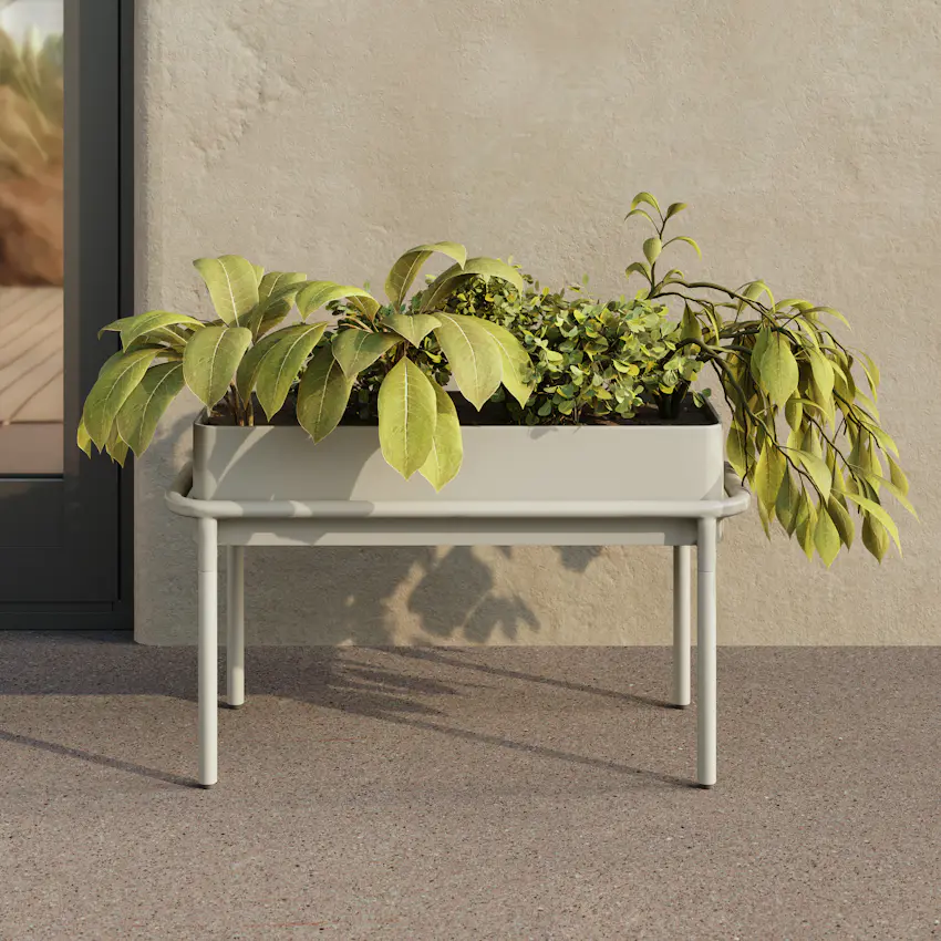 Crafted from powder-coated steel, this sleek planter offers durability without sacrificing design. The soft taupe finish blends seamlessly with both contemporary and classic outdoor setups, while its low, horizontal shape is perfect for creating serene botanical vignettes on patios, balconies, or tabletops.