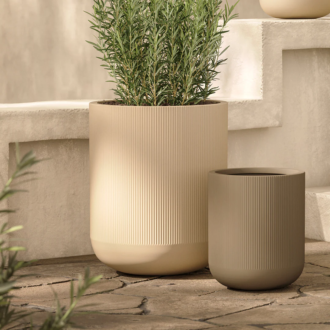 Elevate your greenery with the timeless elegance of the Reya Planter in Limestone Cream—a sculptural statement piece that seamlessly blends classic form with contemporary texture. With its fluted vertical lines and softly cylindrical shape, Reya brings quiet sophistication to patios, balconies, entryways, or living rooms alike.